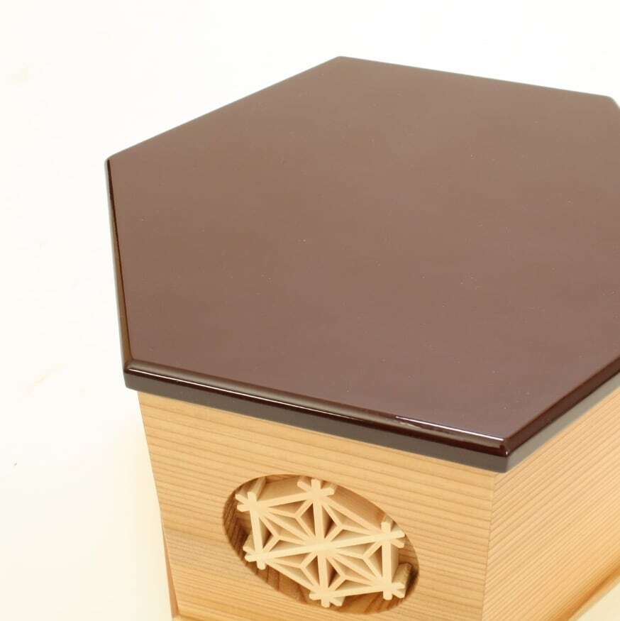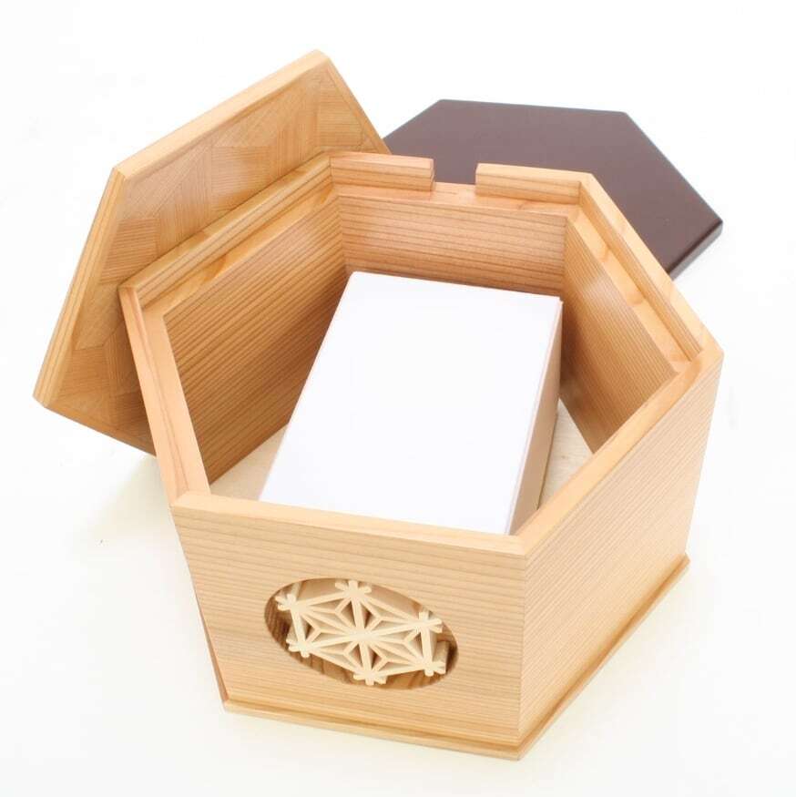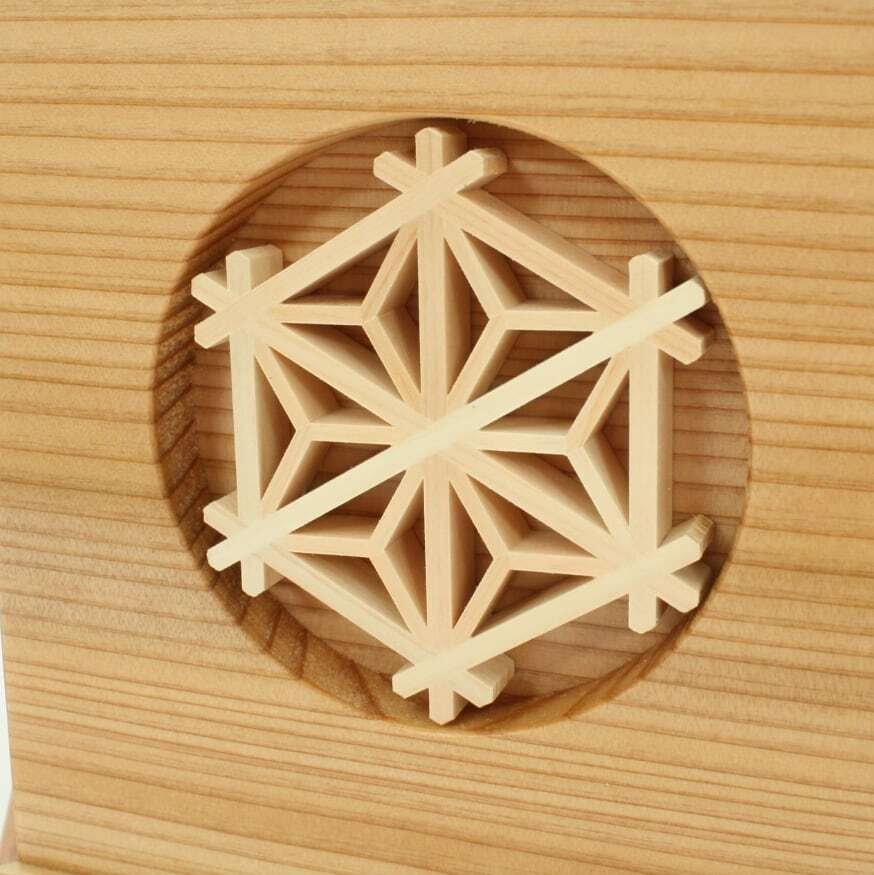 《麻の葉模様(収納箱中央):鹿沼組子細工(桧)》