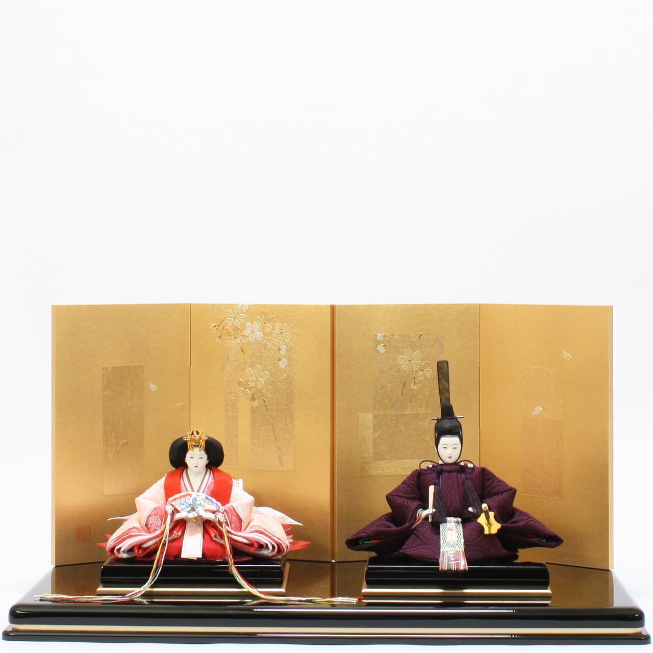 雛人形|ひな人形|初節句|コンパクト|おしゃれ|モダン|インテリア|プレミアム|こだわり|おすすめ|作家|伝統工芸士|京人形|京雛|京都|有職文様|お内裏様左右《商品名》京十一番親王 二世三宅玄祥 正絹 有職 紫ピンク【商品コード 32211-0115】◆台屏風セット 33320-1913 3-19-13 黒塗金地帯 60㎝